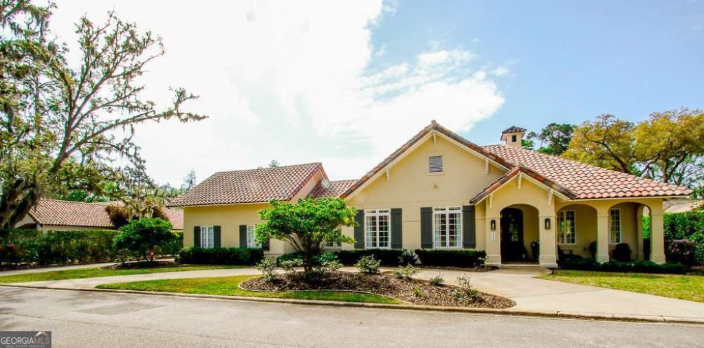 Welcome to refined coastal living on St. Simons Island, where timeless design meets modern luxury in one of Georgia's most sought-after gated communities. This completely renovated designer home showcases an open-concept floor plan with 4 bedrooms and 4.5 baths, each thoughtfully designed as private suites for ultimate comfort and privacy. Primarily single-level living offers convenience and functionality, with the exception of one additional bedroom and bath-perfect for guests or added privacy. From the moment you arrive, the tile roof, circular driveway, and two-car garage set the tone for the elegance found throughout. Inside, expansive living spaces feature beamed ceilings, a striking gas fireplace with pecky cypress and herringbone brick detailing, and custom built-ins that elevate both style and functionality. The chef's kitchen is a true centerpiece, offering premium BlueStar appliances, quartz countertops, custom cabinetry with gold fixtures, an oversized island, and a custom hood over the double oven and 8-burner gas range. Perfect for entertaining, the home includes a spacious dining room that accommodates seating for 14+, as well as a sunroom with serene pool views, complete with a designer bar crafted from pecky cypress and a wine chiller. Step outside to your private oasis featuring a luxury saltwater pool with a stunning travertine pool deck, outdoor wired speakers, and beautifully designed spaces for lounging and entertaining. The newly landscaped grounds with outdoor lighting create a warm and inviting ambiance day and night. The primary suite is a true retreat with hardwood floors, dual closets, and a spa-inspired bath featuring a walk-in tiled shower with glass doors, cast iron soaking tub, and dual vanities with upscale finishes. Additional highlights include new lighting, door hardware, plumbing fixtures, front doors, a new HVAC system on the main level, and the added peace of mind of a Generac whole-house generator. This exceptional property offers coastal sophistication-an extraordinary opportunity to own a turn-key home in one of Georgia's most coveted coastal communities.