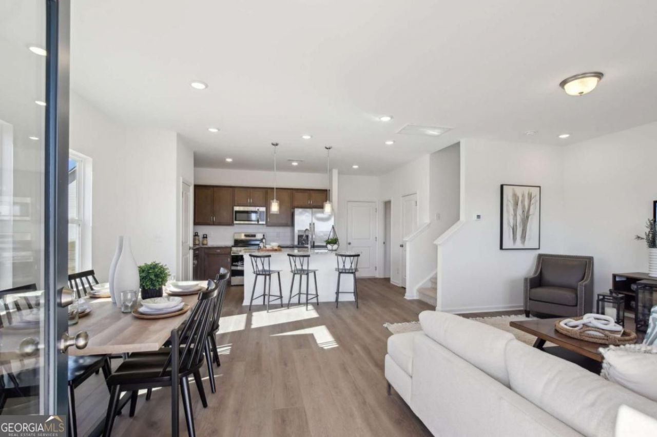 Move in Ready July 2026! The Sussex plan by Smith Douglas Homes in Crescent Towns! This thoughtfully designed rear entry 3BR/2.5BA end-unit townhome offers comfort, convenience, and functionality throughout. The two-car rear garage leads to a kitchen with upgraded cabinetry, granite countertops, and a large center island. The cozy dining area is open to the kitchen and family room, with a convenient exit to the expansive front porch. There is also, a linear fireplace in the family room. Upstairs, the owner's suite features double vanities, a separate shower, garden tub and a spacious walk-in closet. Two bedrooms, a full hall bath, and a second-floor laundry room provide convenience for household chores. Nine-foot ceilings on both levels create a spacious, airy feel throughout. Residents will also enjoy a planned community pool with cabana and lawn maintenance included through the HOA-making this home as effortless as it is elegant. Photos representative of plan not of actual home. Agent is not onsite at present time. Please contact Wendy Williams for further information and to set up an appointment.